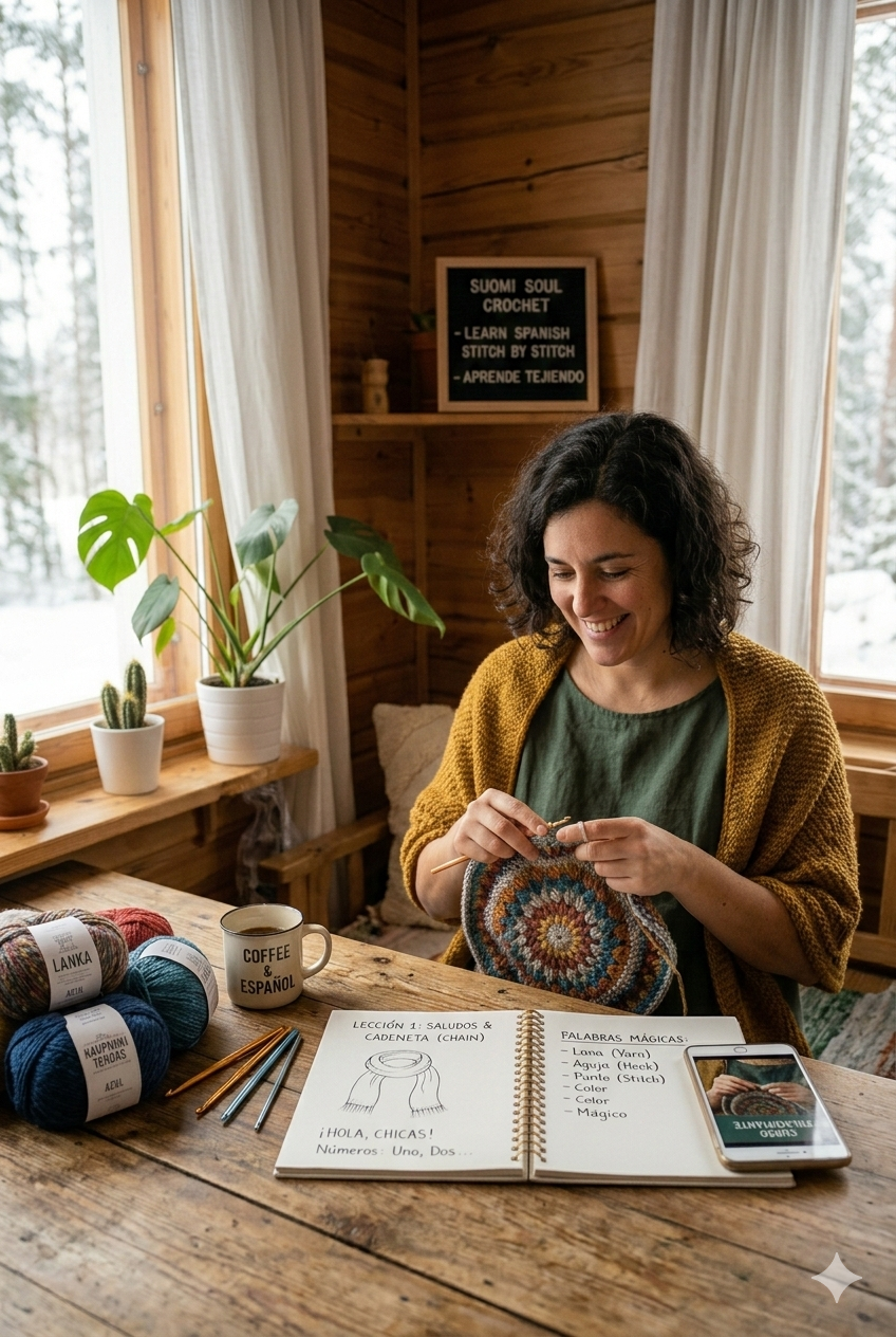 🧘 Active Meditation: Reduce the stress of the Nordic winter with the warmth of Hispanic culture.Have you ever dreamed of speaking Spanish while enjoying the calm of your home? At Suomi Soul, we have created a magical way to learn: no books, no stress, and lots of wool.